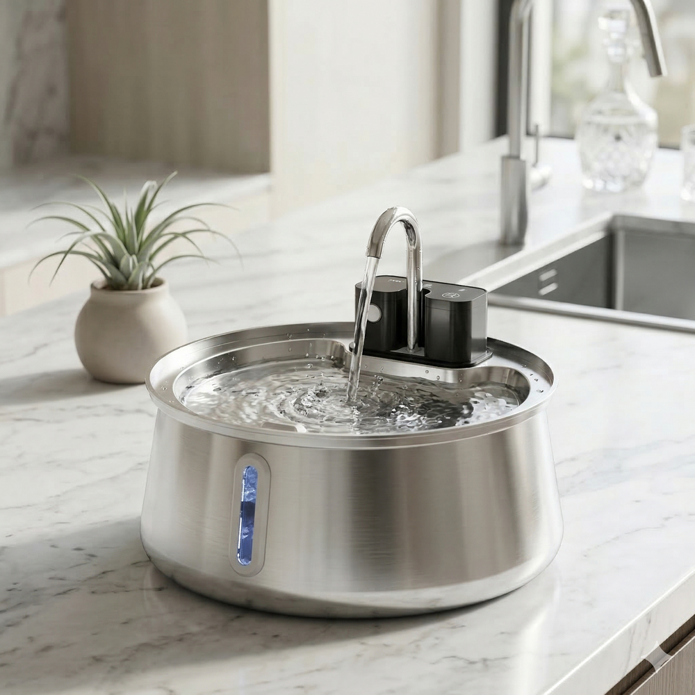 Because the water is continuously filtered as it circulates, it stays cleaner for longer — not just right after refilling.